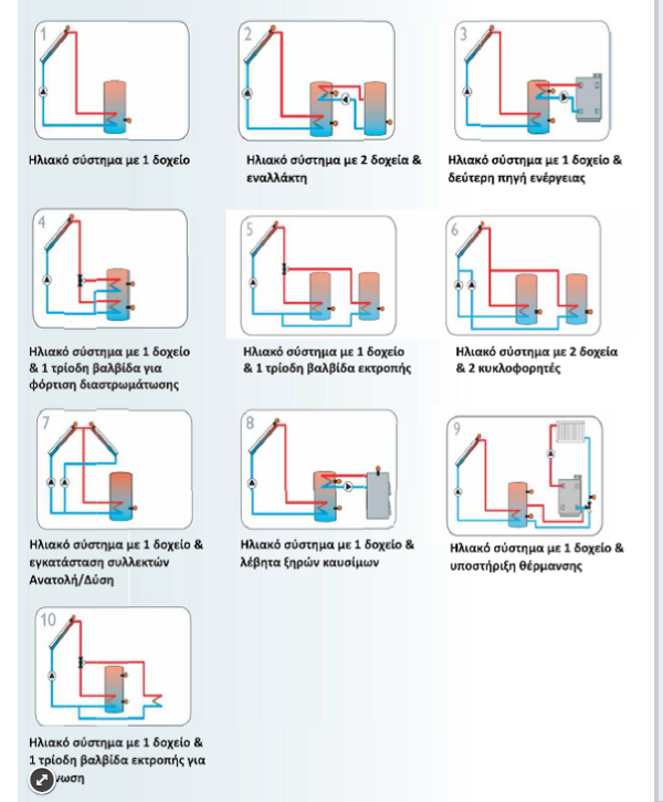 Υδραυλικά διαγράμματα ηλιακών συστημάτων βεβιασμενης κυκλοφορίας (SOLAR)